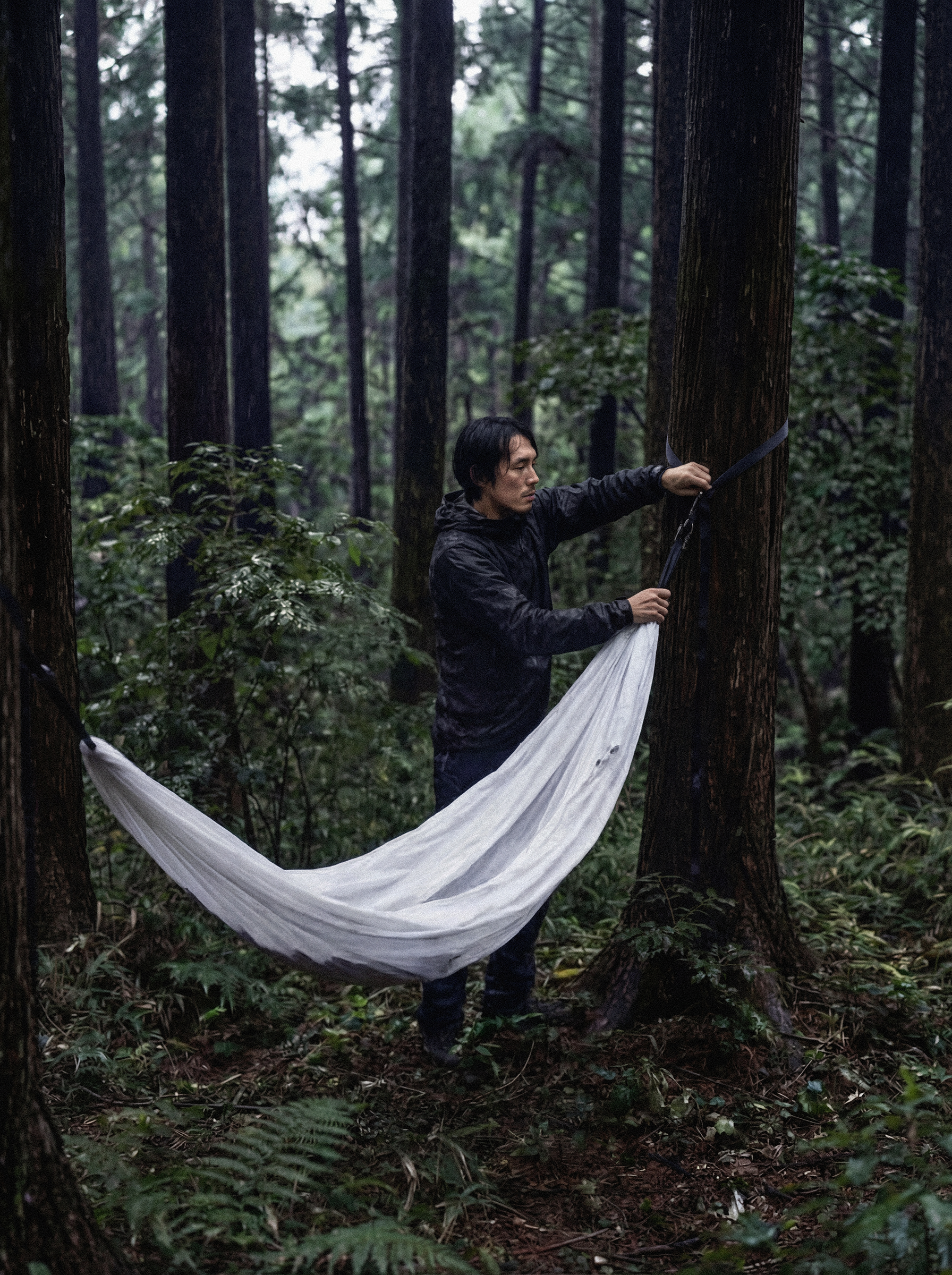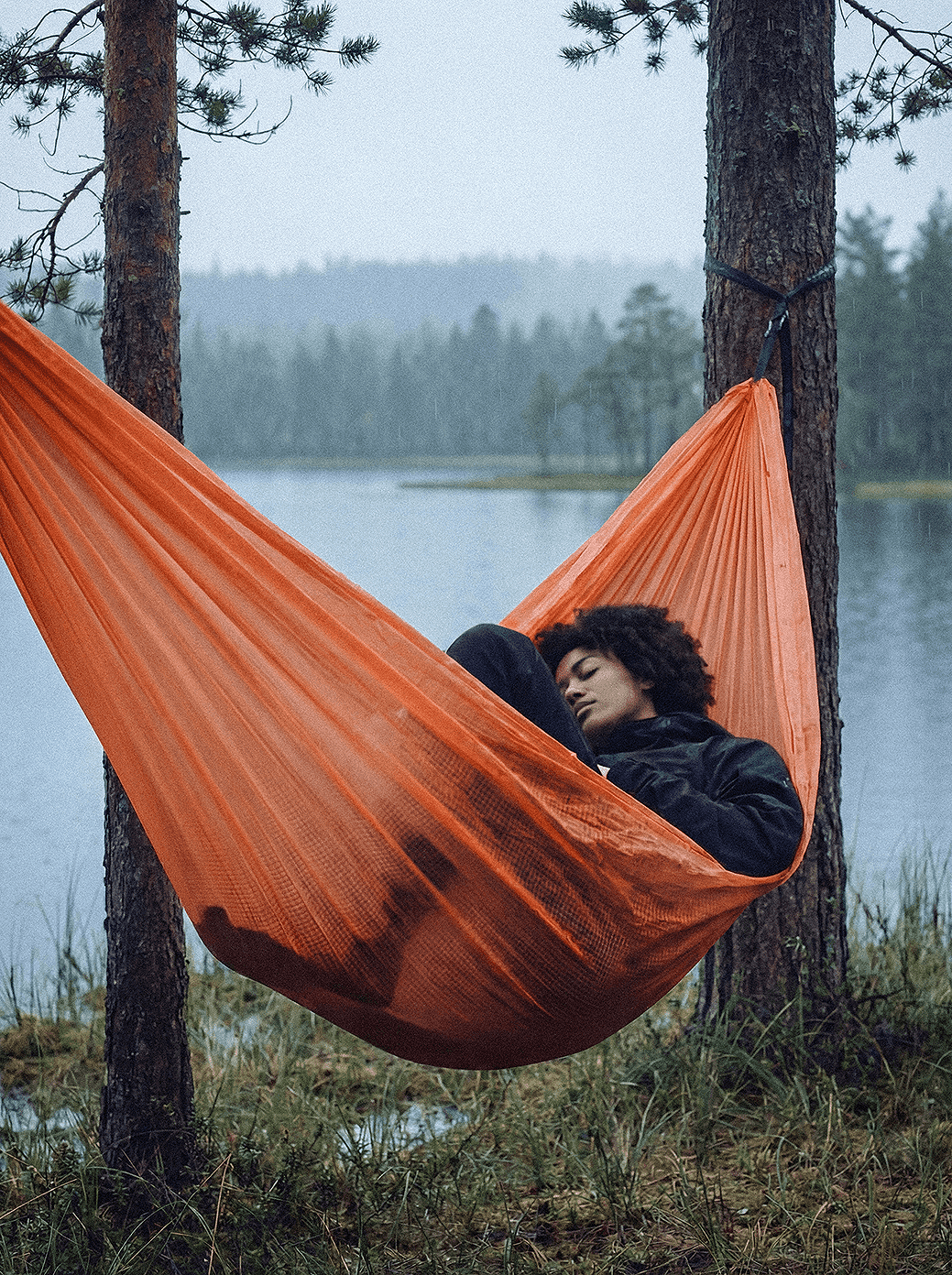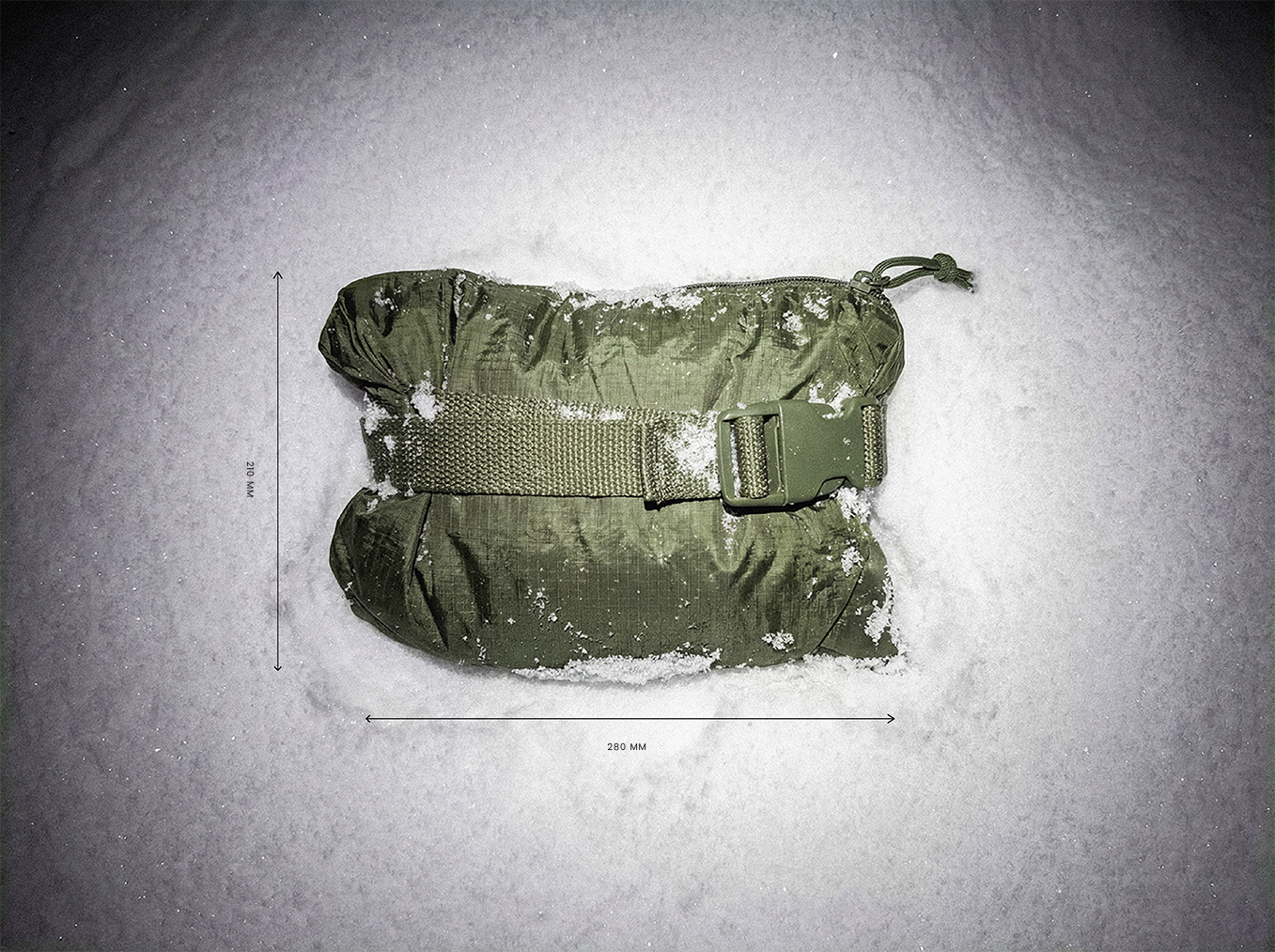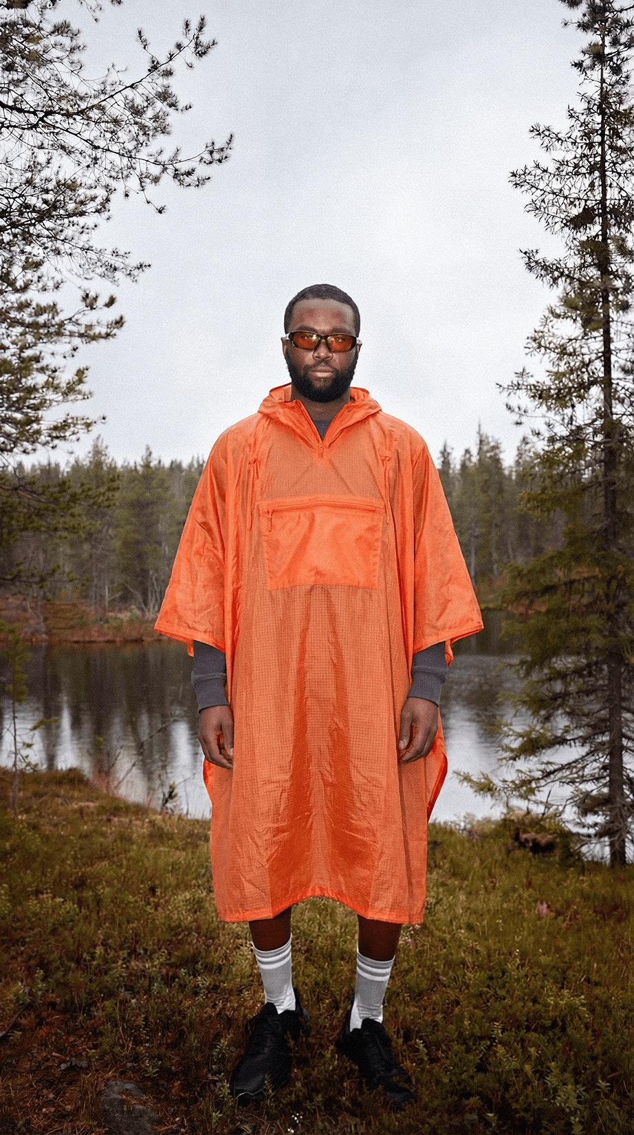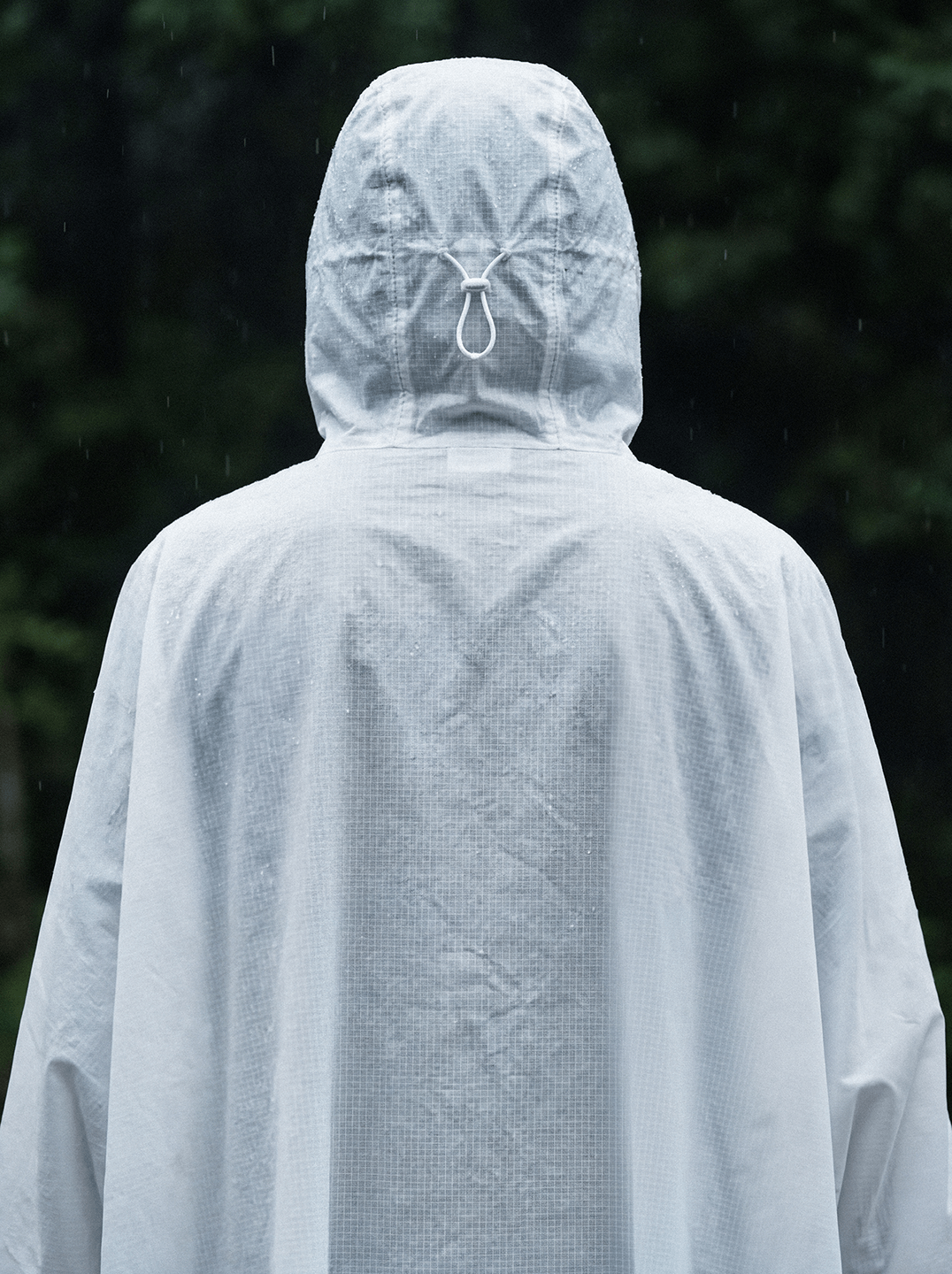 All the straps and accessories needed for the hammock are stored in hidden channels running along both short ends of the poncho. This enables everything to be carried in one piece, without the need for an extra pouch or the possibility of forgetting a strap or even losing it out in nature.