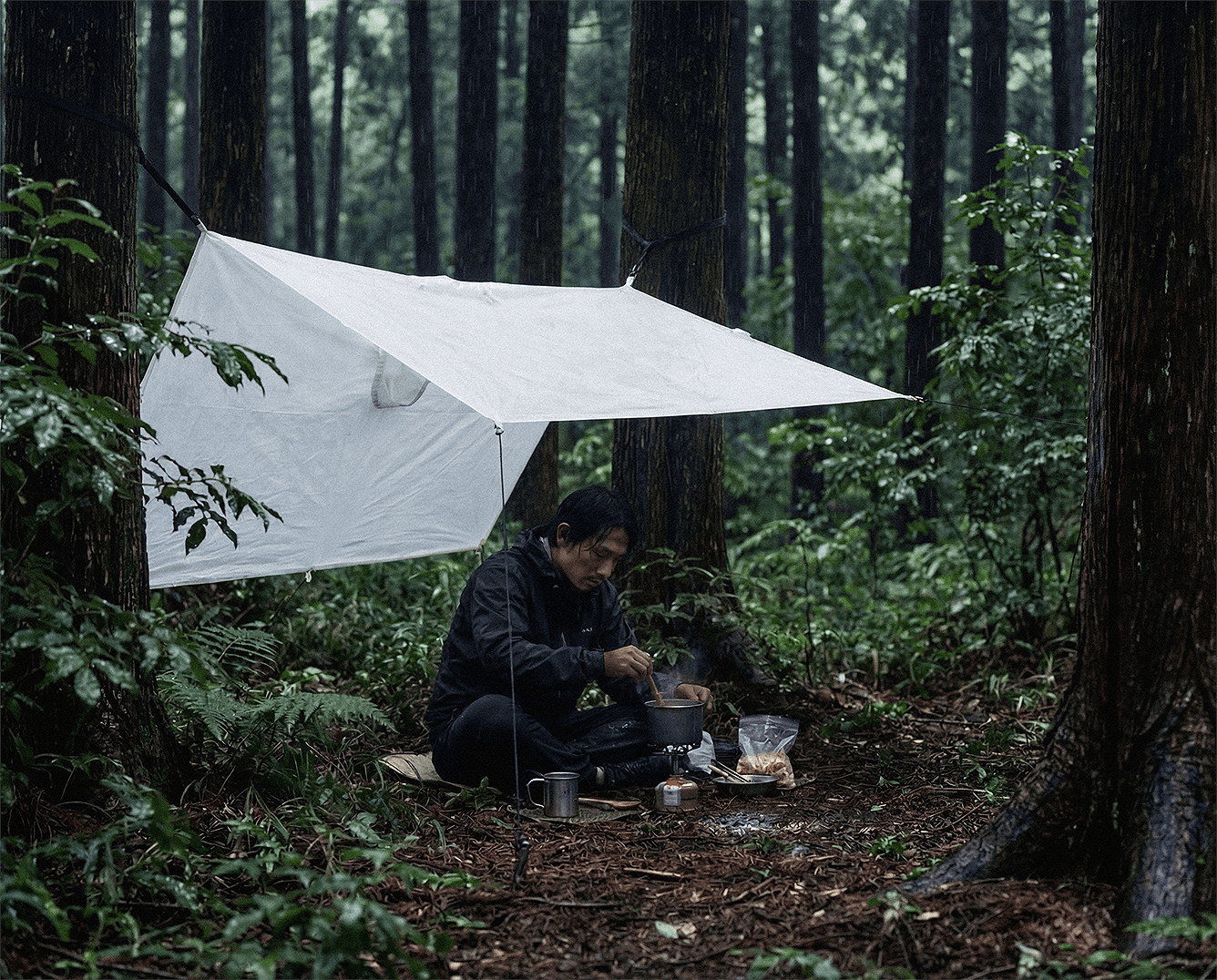 At 465 grams, the Moncho, or “multi-purpose poncho,” fulfills the function of three different items, optimizing your gear while still shaving off those grams. A poncho, a hammock, and a tarp all combined into one very small and lightweight package.
